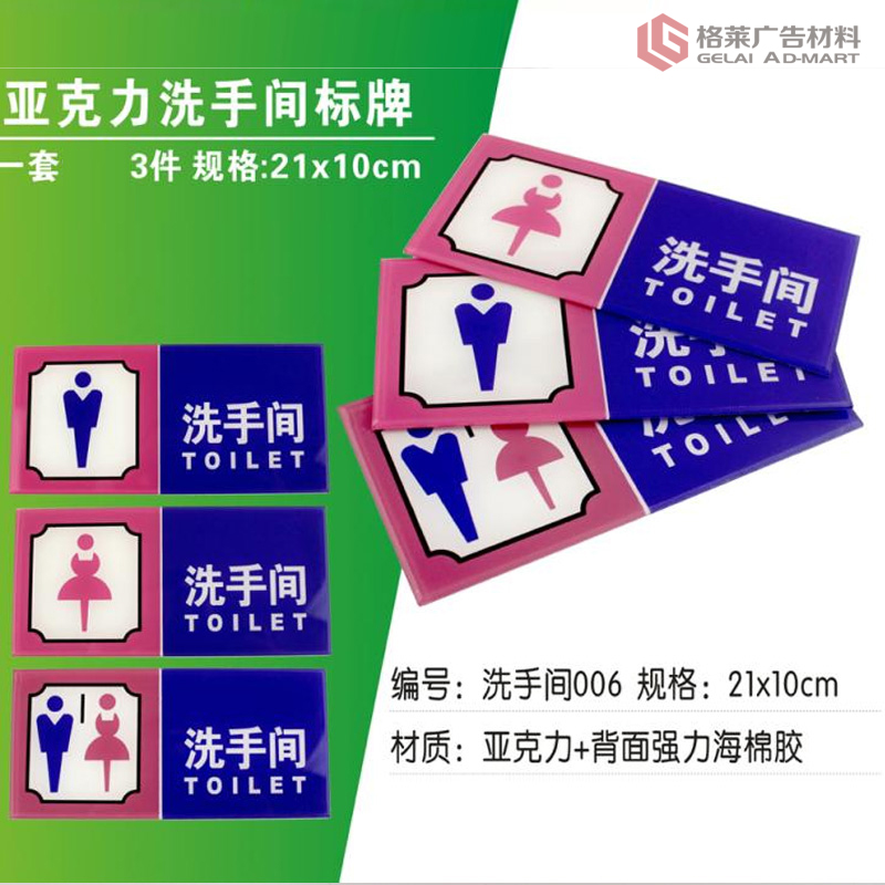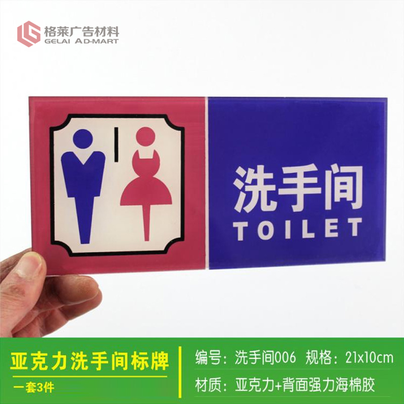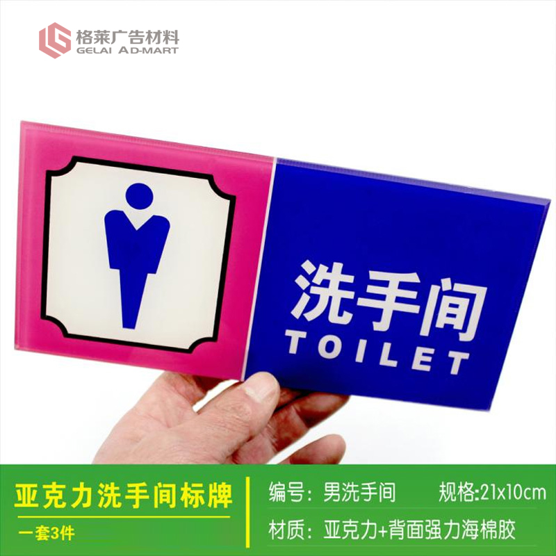 洗手间标志牌 门牌标识牌 亚克力丝印中英文指示