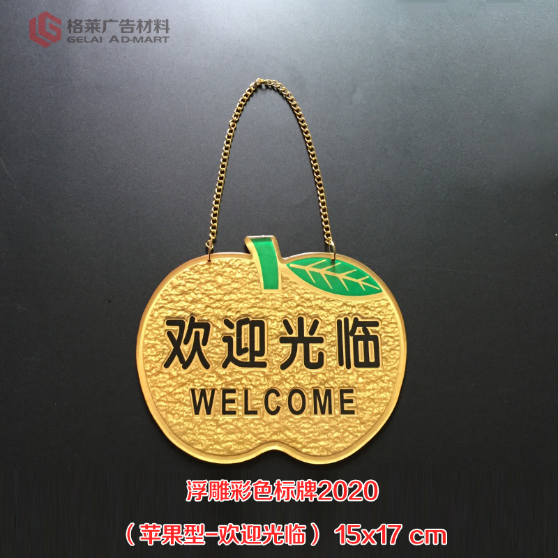 浮雕彩色标牌2020(苹果型-欢迎光临)-15x17cm