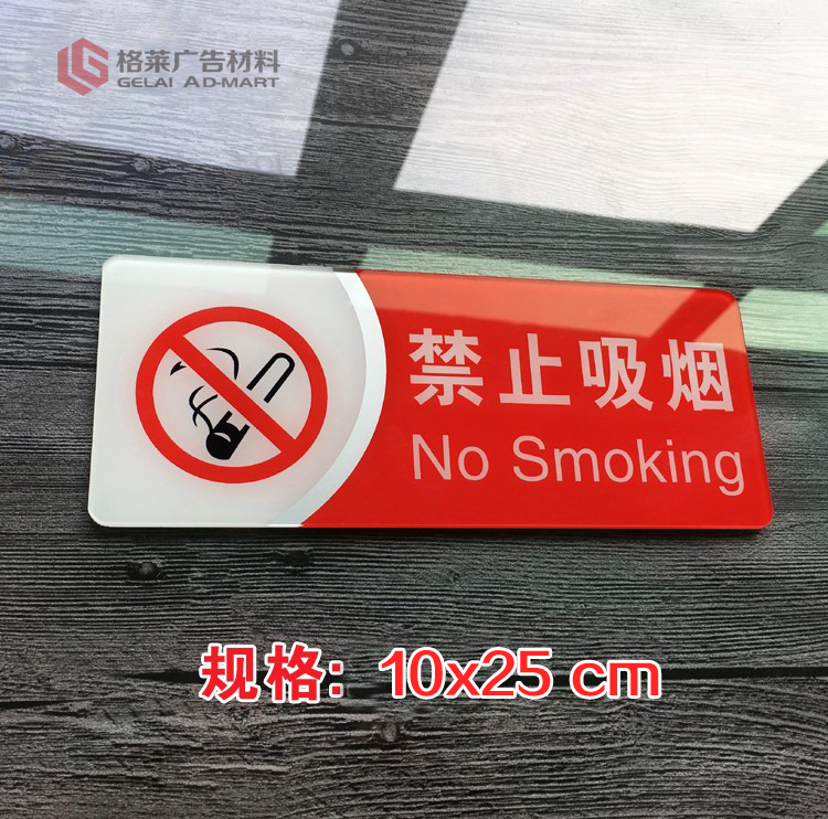 亚克力彩色标牌2699(方形静止吸烟)-10x25