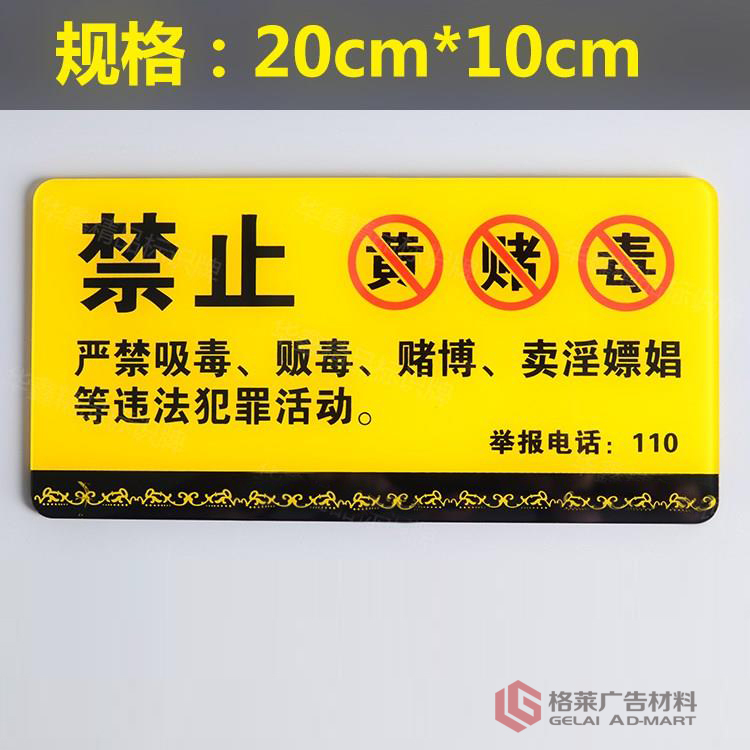 亚克力彩色标牌2692(静止黄毒赌)-10x20