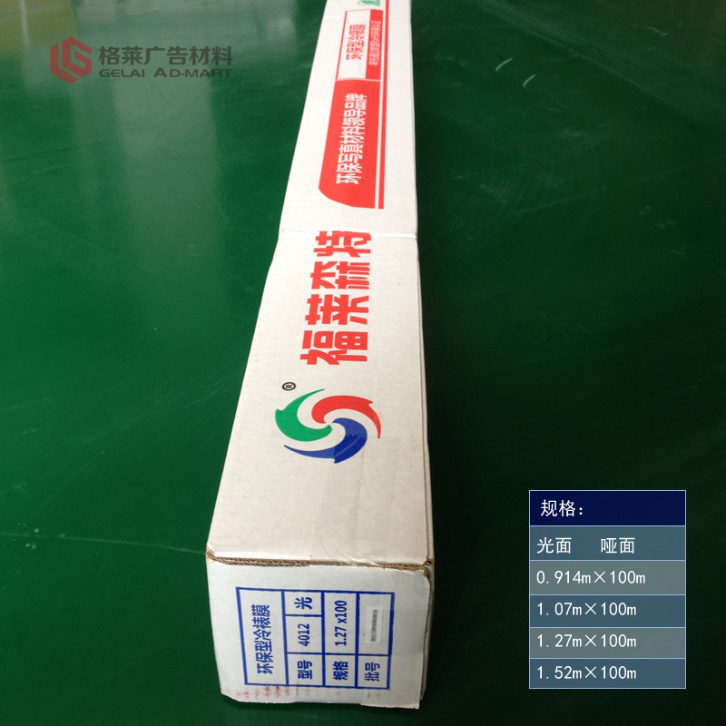 环保水晶膜(透明底纸膜)透明度高,不缩边,不变形,环保。 摈弃了之前传统有底纸冷裱膜的一些劣势,成功的以物美价廉的特点,在市场竞争激烈的现状下广泛应用于菜谱,菜牌,工程图,广告等领域,更好的节约成本,人工,时间,空间。透明度高完全媲美市场上的高级影楼专用膜。 【品名】:福莱水晶膜 【宽幅】:0.914m/1.07m/1.27m/1.52m 【长度】:100m品 名 型 号 规 格 备 注 福莱水晶膜-1型(黄包装4S面膜) 光面/哑面 0.914m/1.07m/1.27m×100m 4丝 1.52m×100m 福莱水晶膜(白包装5S面膜) 光面/哑面 0.914m/1.07m/1.27m×100m 5丝 1.52m×100m