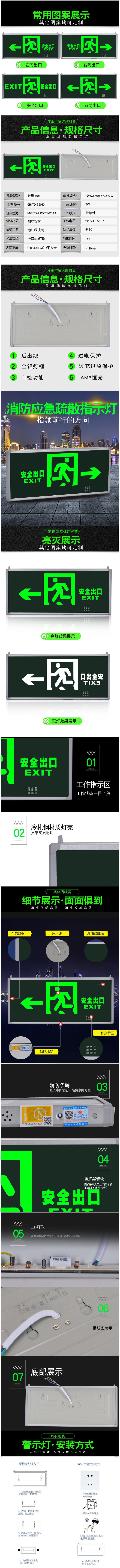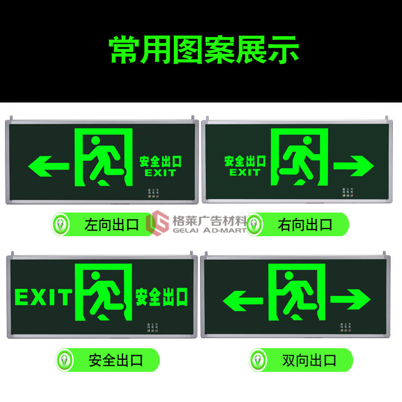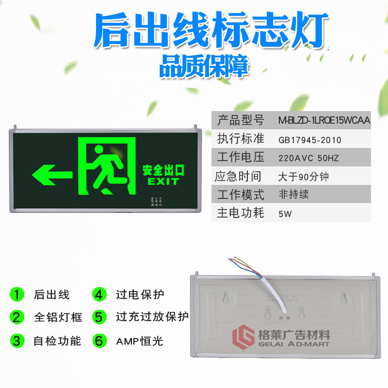 带灯安全出口牌 安全出口指示灯 背出线后出线疏散指示牌