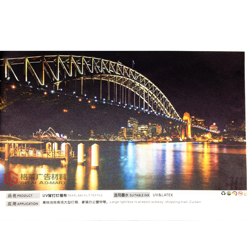 UV背打灯箱布 适用墨水:UV&LATEX应用:高铁地铁商场大型灯箱,家装办公窗帘等【特点】轻薄色彩饱和【尺寸规格】1.65/2.5/2.8/3.2*50m。克重125gsm