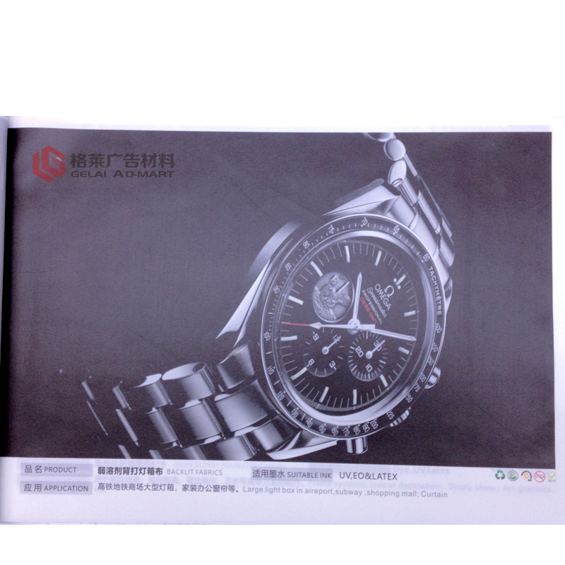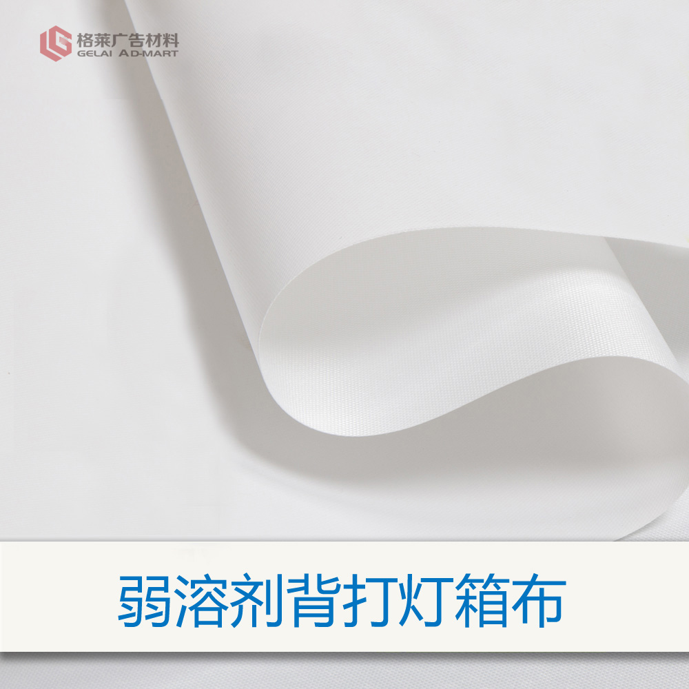 弱溶剂背打灯箱布【说明/特点】轻薄、色彩饱和。【适用墨水】 UV,EO&LATEX。【尺寸规格】1.65/2.5/2.8/3.2*50m。克重190gsm【产品应用】可应用于地铁商场等大型灯箱,家装办公窗帘等。