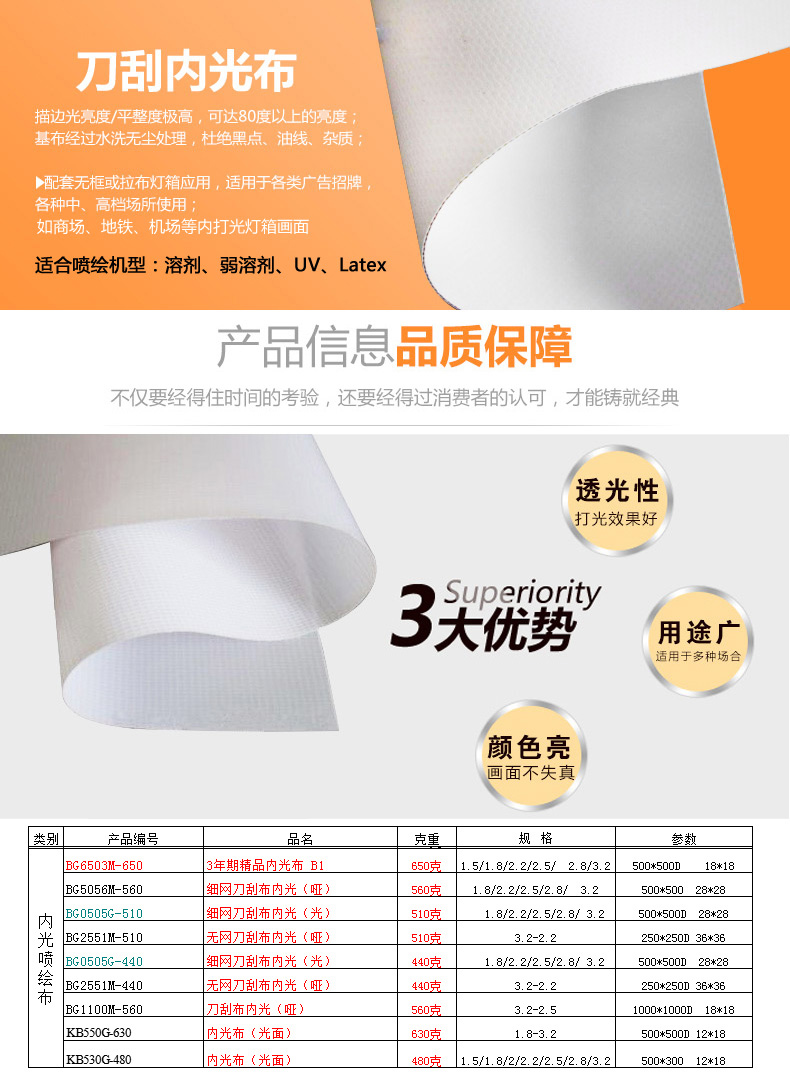 内光喷绘布 3年期精品内光布 B1