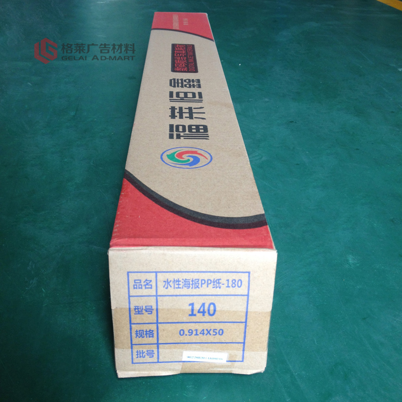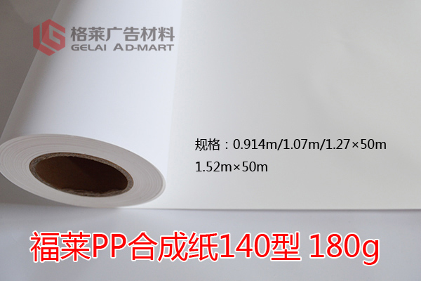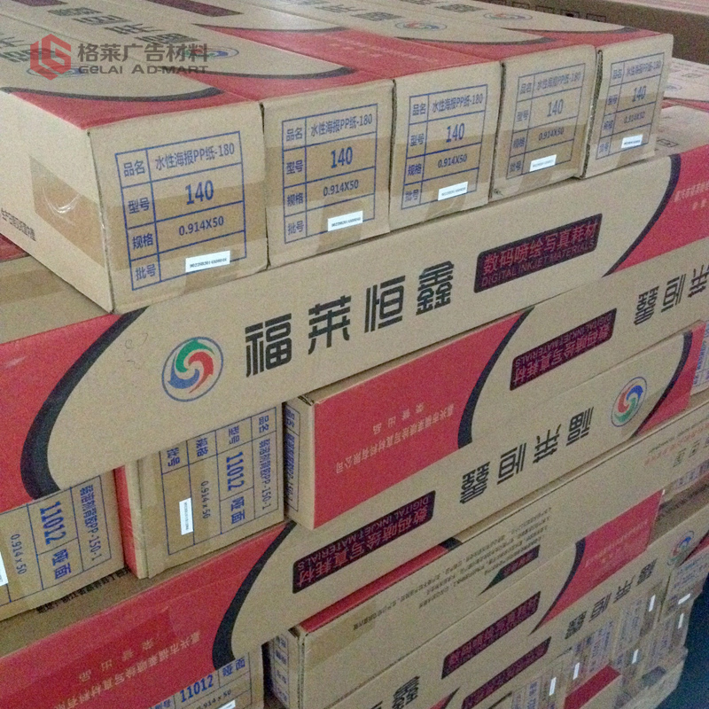 PP合成纸是广告制作中最常用的基本耗材。材料本身没有胶,染料墨水打印的是水性背胶,不防水,涂层遇水即化,所以必须覆膜户内使用。涂布水性吸墨涂层,具有良好的打印防滑性能,产品打画色彩艳丽,价格低廉,墨水干燥速度快;