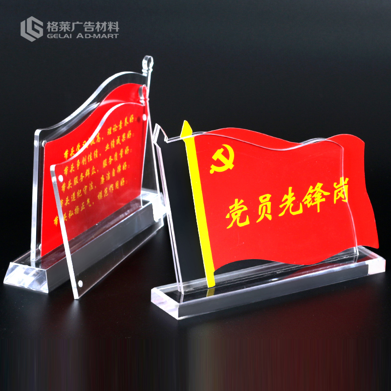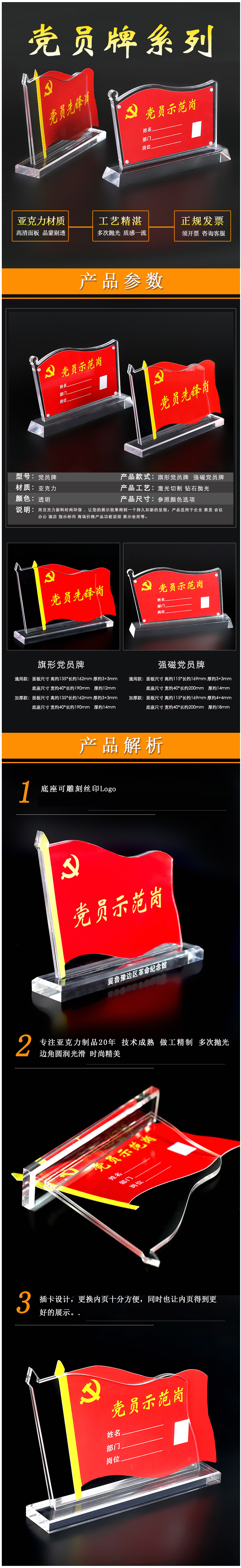 党员先锋岗旗形示范岗水晶台卡党员台签