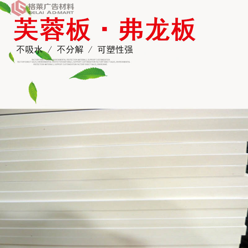 --产品特性--产品名称:芙蓉板A级PVC面产品规格:1.2m*2.4m 产品厚度:10mm 20mm 30mm 40mm。--产品说明--芙蓉板是一种新型化工板材,它是以高压聚乙烯EVA为主要原料,添加各种助剂,经化学架桥发泡形成,单面或双面复合PVC板而成,其表面溶洞平整,且有一定硬度。不吸水,不分解,亦不受雨水、潮湿影响,不腐烂,抗老化,抗紫外线照射,耐油、耐酸、耐碱及其他化学成份的腐蚀,隔音、吸音、隔热保温等性能,产品质地轻,易储运、施工、切割、雕刻。雕刻能体现立体效果,黑白色板用量大,切出字或图案后喷上彩色油漆,效果好且省时间,价格只有传统PVC板的三分之一。--应用范围--主要用于电脑雕刻,丝网印刷,广告标牌,展板,标志用板等领域。