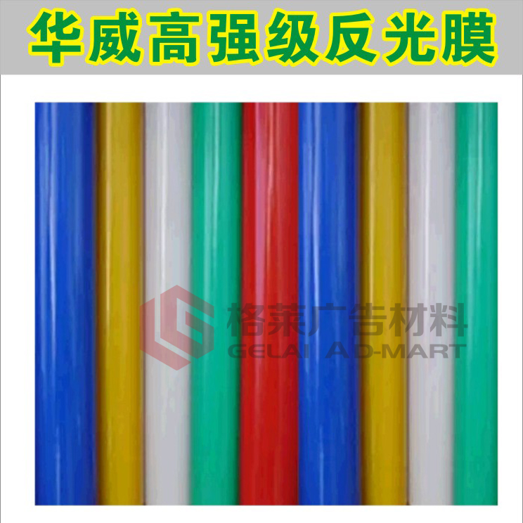 能够满足丝印、喷绘等加工工艺要求,韧性好。原国标五级膜户外耐候性3年。 【品名】:华威反光膜经济 【宽幅】:1.22*45.7m 【颜色】:白色、红色、黄色、蓝色、绿色、棕色 适用于压敏标签和标识标牌的制作,单色,多丝网印刷,适用于电力电信标识、临时标识、车身广告、个性车贴等。