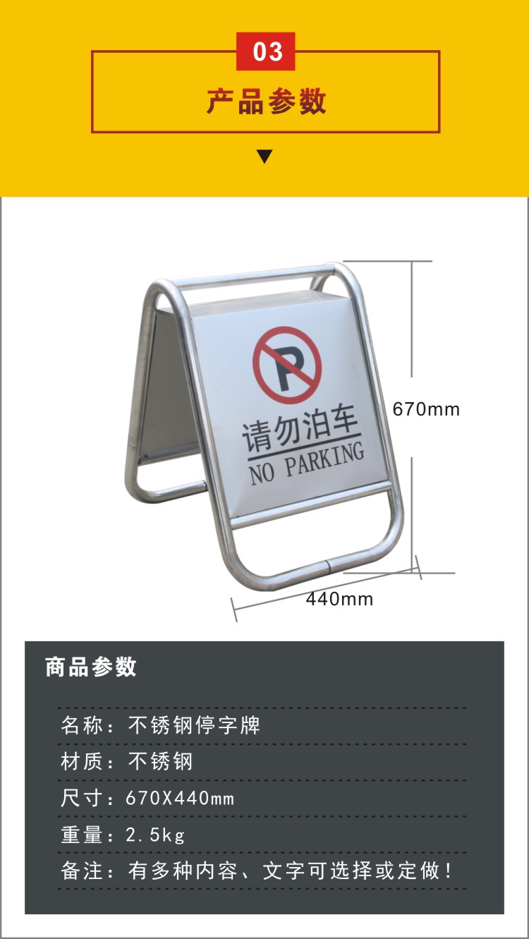 • 备注:型号规格:禁止停车/请勿泊车/专用车位/车位已满/空白等67x44cm