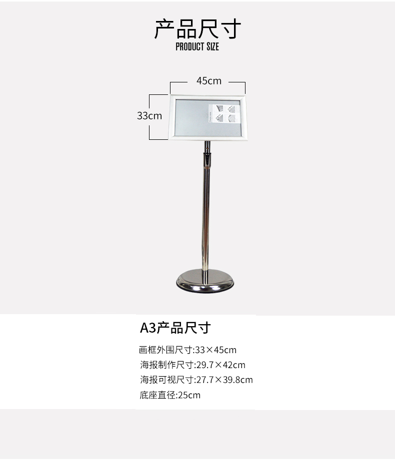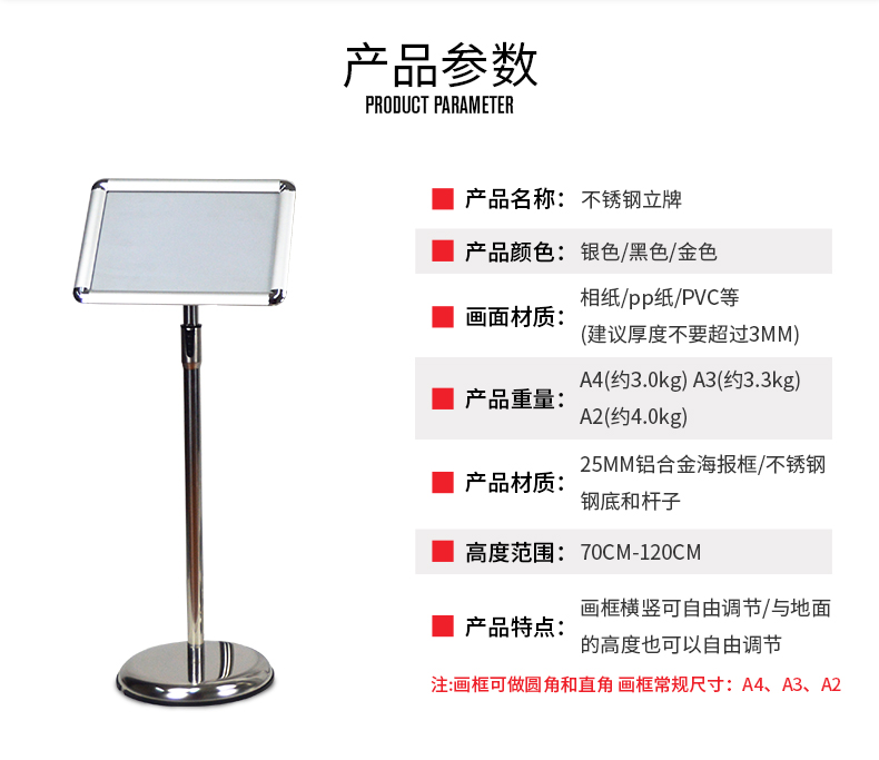 • 备注:画面 A3尺寸 /密度板底板/高70-120cm/(钛金 亮银)