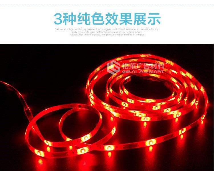 低压软灯条【说明/特点】软性印刷电路板,折弯曲度接近180度,可裁剪,低压驱动,高亮度,能耗小,使用寿命长。【使用方法】1.DC12V,低压安全启动 2.每卷单独连接电源或一个电源多卷连接控制。【注意事项】请在标准电压(DC12V)下使用。【产品应用】各种广告标识的背光源、超小字体,狭窄空间的光源,室内外装饰,尤其是酒吧,迪厅等装饰照明。