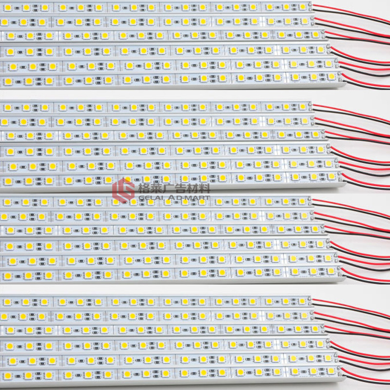 防水硬灯条【说明/特点】1.低电压驱动,12V输入,高亮度、低能耗,寿命长(3万小时)。【使用方法】1.DC12V,低压安全启动 2.根据需求裁切或焊接所需尺寸;接入配套电源并通电测试。【注意事项】请在标准电压(DC12V)下使用。【产品应用】应用于超薄灯箱光源,大型广告牌的侧光源、背光源,建筑领域装饰光源。
